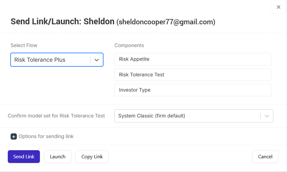 All clients are encouraged to complete the Risk Tolerance Plus sequence if they haven’t already. This sequence includes the Risk Appetite Questionnaire, Risk Tolerance Test, and the Investor Type mini-questionnaire.