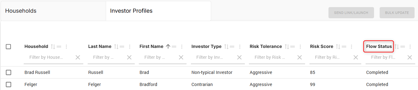 You can also view the Flow Status on the Investors page under Client Management → Investor Profiles