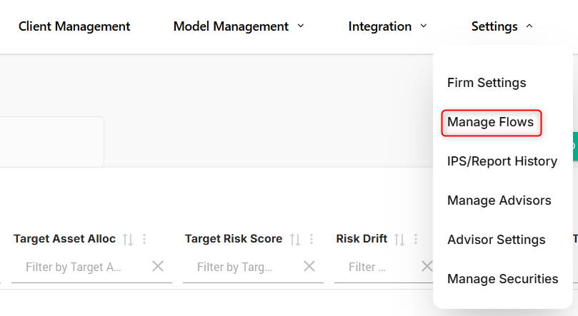 2. Navigate to Settings → Manage Flows