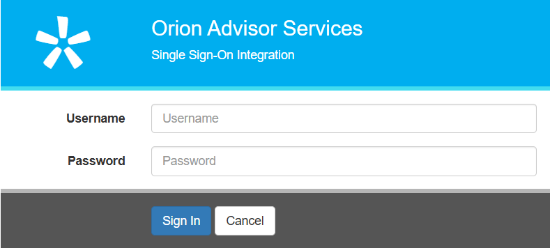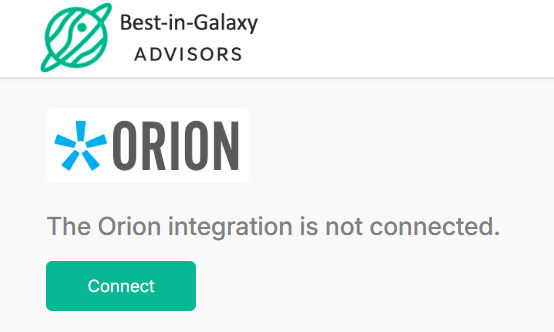 3. Click 'Connect' and it will prompt you to a page to enter your Orion credentials: