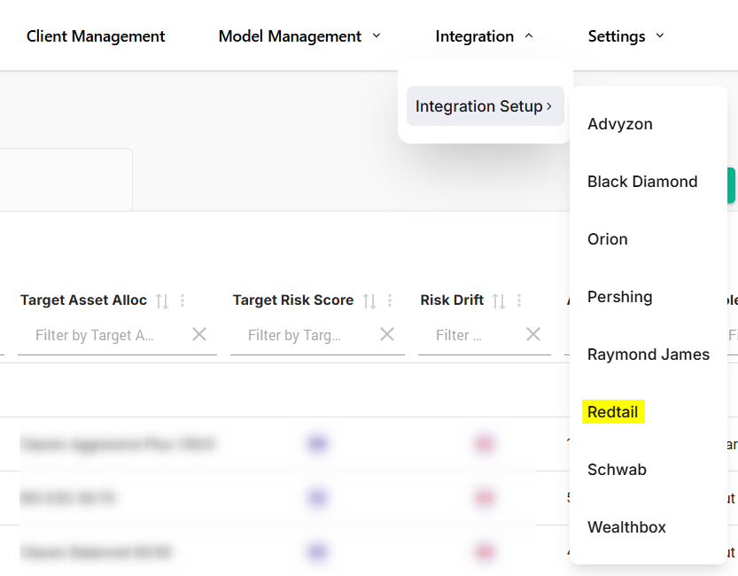 2. Navigate to Integration → Integration Setup → Redtail