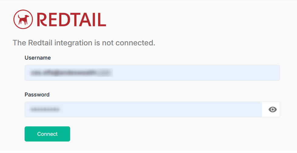 3. Then enter your Redtail credentials and click 'Connect'.